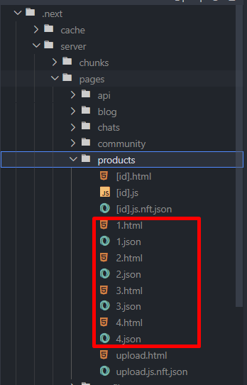 그러면 아래 사진처럼 products폴더 안에 빨간 박스 부분 없이 build됨.