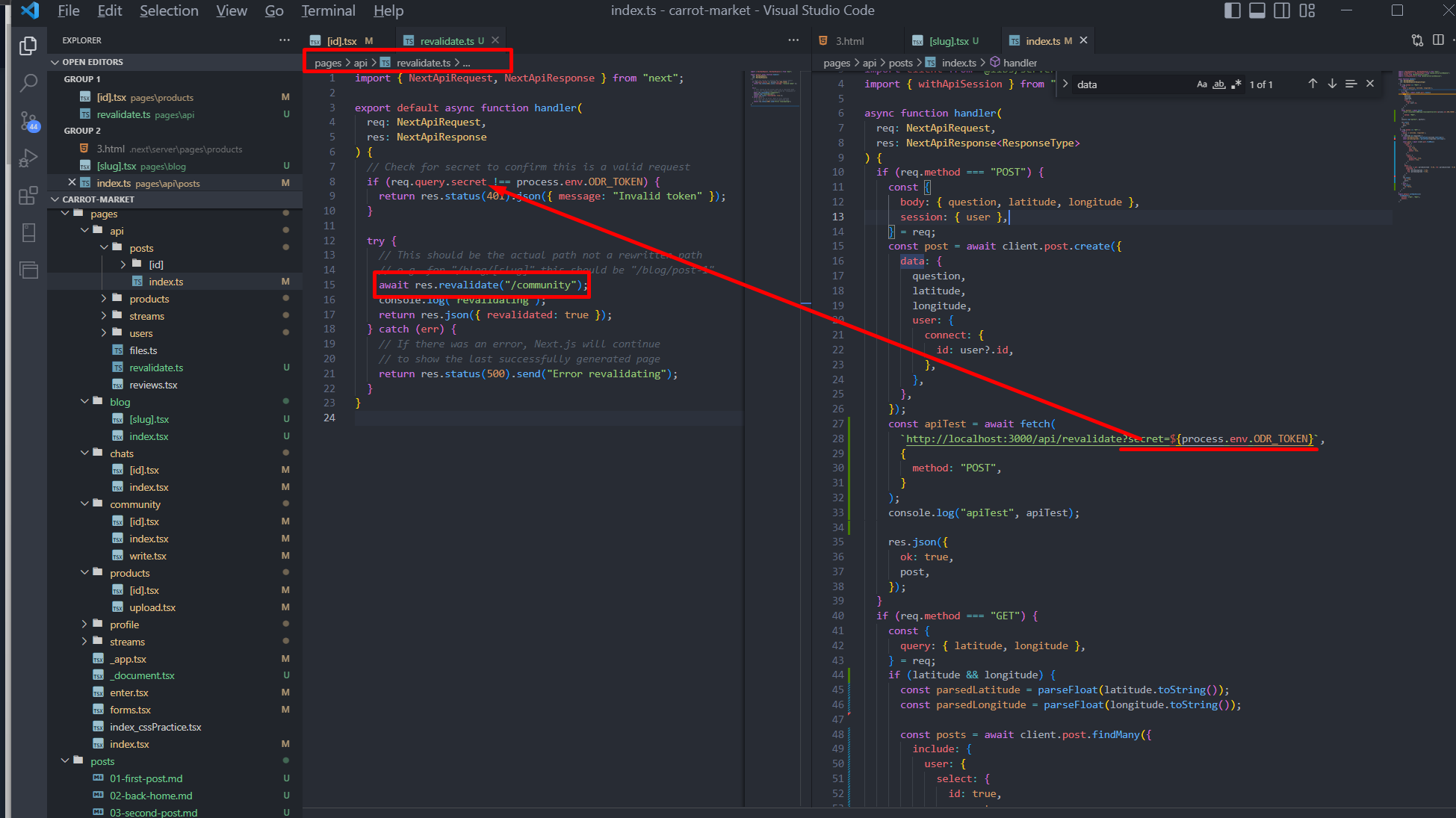 api 폴더 내에 revalidate.ts를 만들고 .env에 나만의 TOKEN을 저장한다.